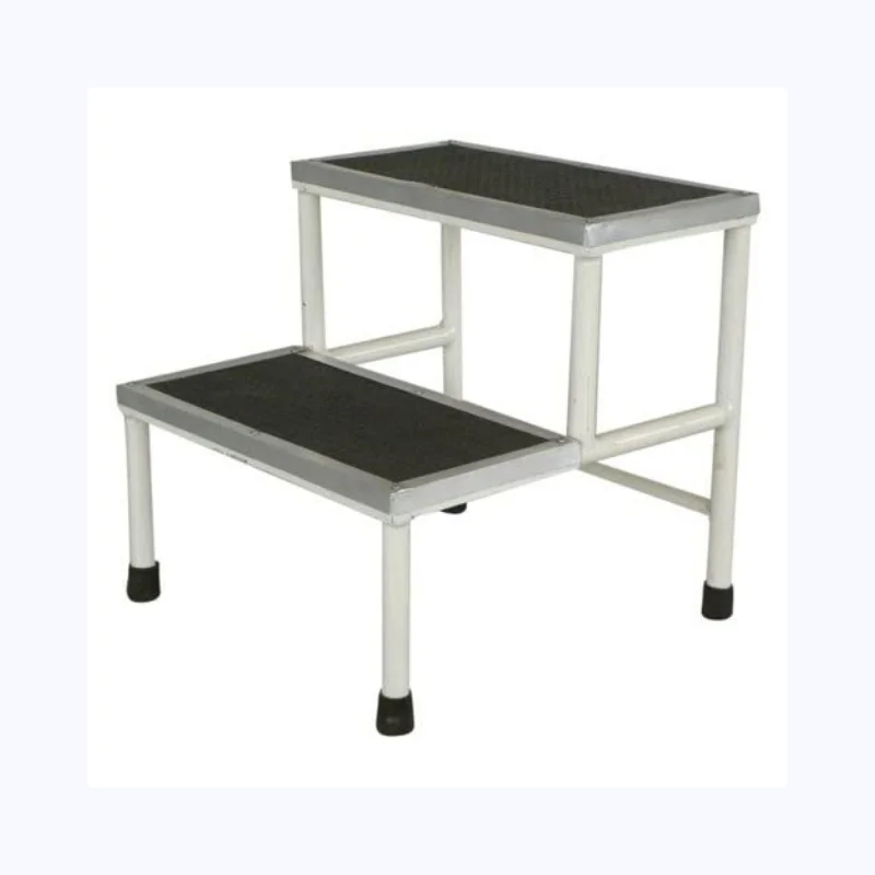 Sturdy double-step platform assisting patients with safe access to radiology tables and equipment. Its non-slip design and high weight capacity enhance safety and comfort for both patients and staff.